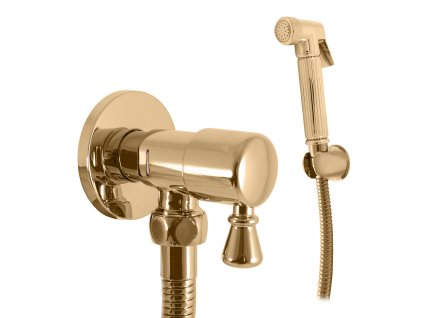 Hygienická súprava pre bidetovú batériu na dve použitia (na jednu vodu alebo dve vody pomocou zabudovanej batérie), s prietokovým držiakom s keramickým ventilom, sprcha s tlačidlovým mechanizmom - plast.