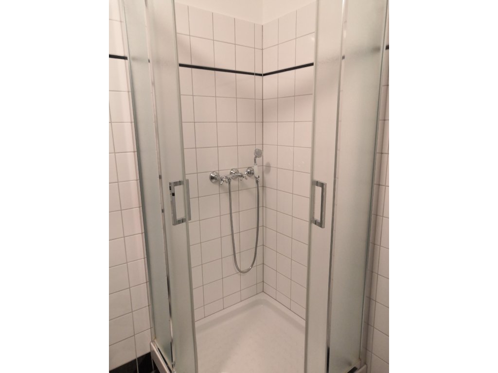 Nástenná sprchová batéria so sprchou a otočným držiakom.