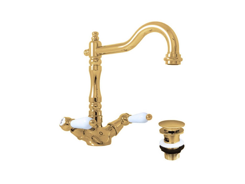 MORAVA RETRO - Umývadlová batéria s výpustou, Zlatá lesklá MK521.0/8Z, RAV Slezák