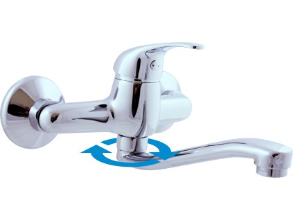 Nástenná drezová batéria s okrúhlym otočným ramenom.