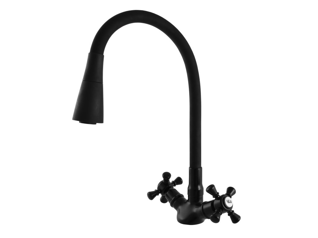 MORAVA RETRO - Umývadlová/drezová batéria s flexibilným ramienkom bez výpuste, Čierna - matná MK320.0/13CMAT, RAV Slezák
