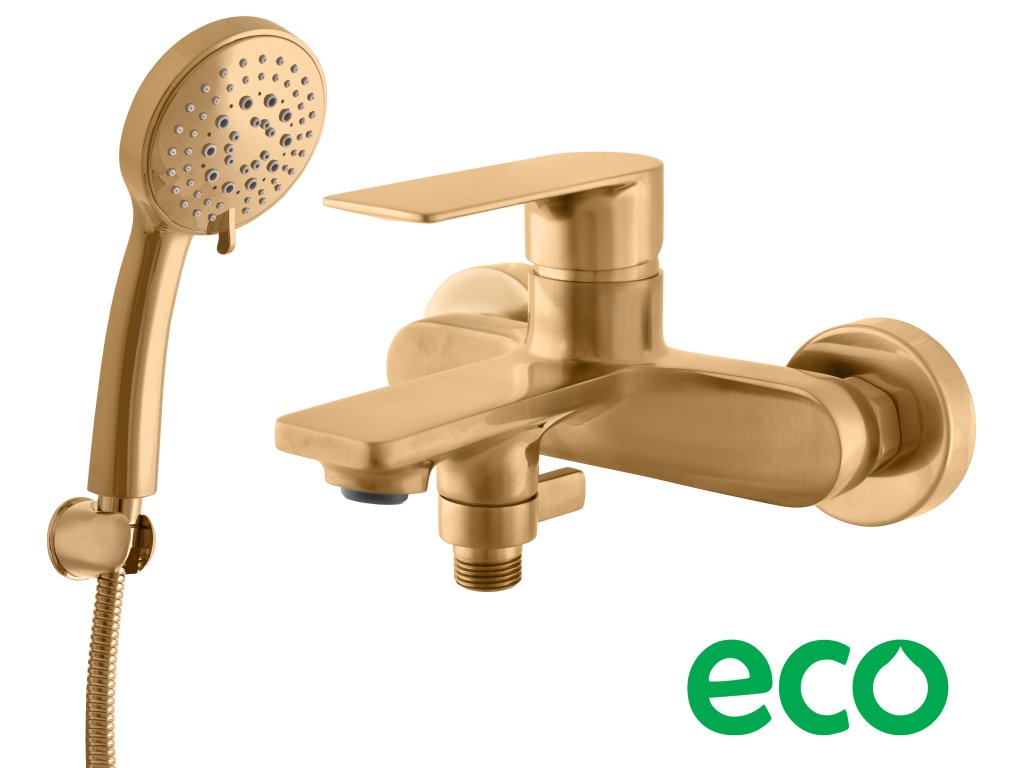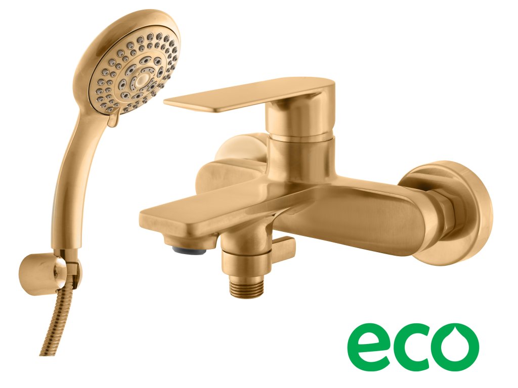 - Nástenná vaňová batéria so sprchou a pevným kovovým držiakom.