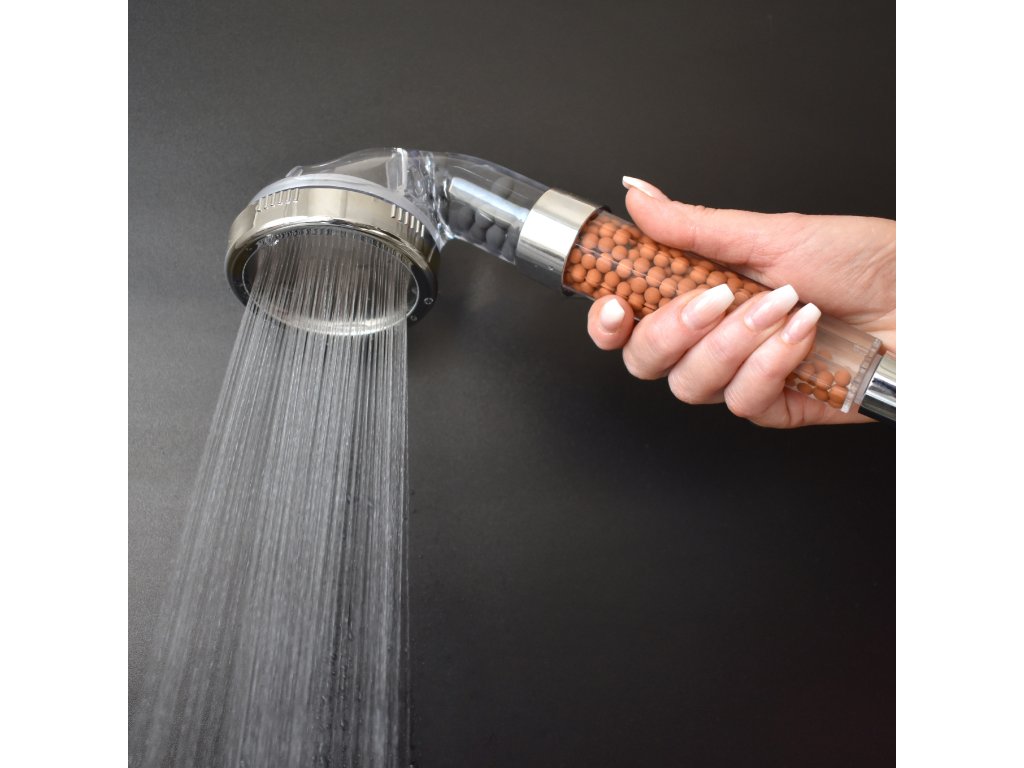 Filtračná sprcha obsahuje 3 druhy bioaktívnych minerálnych kameňov, ktoré eliminujú chlór vo vode, zabezpečujú správnu cirkuláciu a prevzdušnenie vody, ako aj jej rovnomernú distribúciu do všetkých sprchovacích trysiek. V neposlednom rade zabraňujú zanášaniu trysiek vodným kameňom a aj v prípade veľmi tvrdej vody možno sprchu ľahko rozobrať na jednoduché čistenie.
