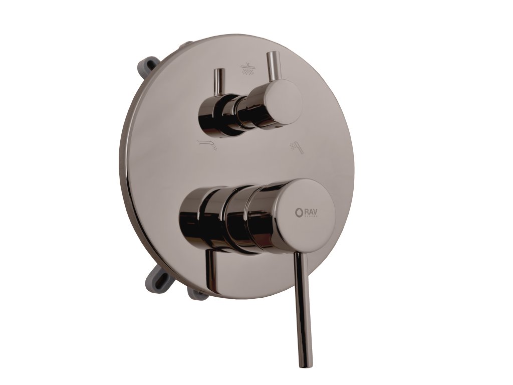 Vstavaná sprchová/vaňažová batéria s tlačidlovým prepínačom.