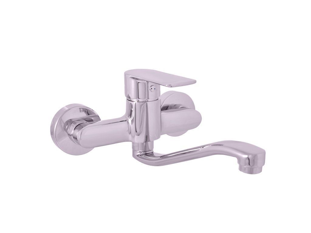 Nástenná drezová batéria s plochým "S" ramenom 195 mm.
