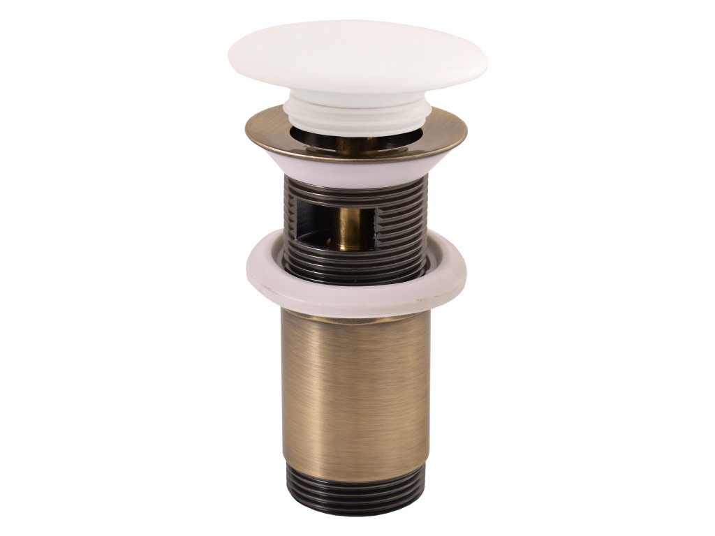 Umyvadlová zásuvka CLICK-CLACK 5/4 s keramickou zátkou - stará mosadz.